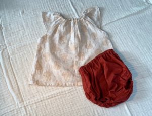うさぎ柄チュニックの生地はダブルガーゼ 赤ブルマはブロードコットン100% とても素材が柔らかく着やすいです♪